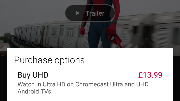 The UK listing for Spider-Man: Homecoming (left), with purchase options (right)